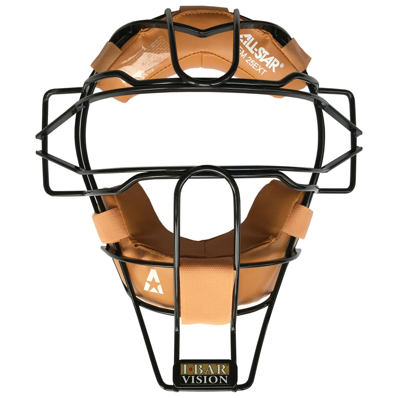 Includes both Black padding and Tan padding sets. You can’t ever go wrong with an FM25 traditional, pro style facemask from All-Star. Designed with a solid steel cage, the mask provides great vision and coverage. The solid steel cage features our I-BAR VISION construction, where the horizontal bars around the eyes are flat for increased vision. The included standard harness is designed to hold the mask securely in place and offer 3-point adjustability. The black padding set provides a traditional look while the tan padding set keeps you cooler and shows less dirt and dust from the field.