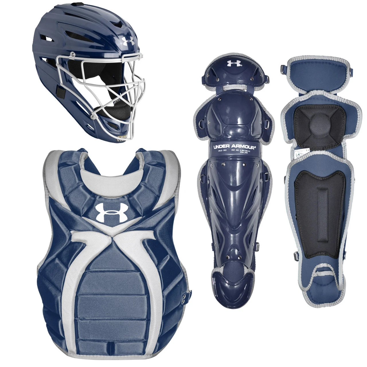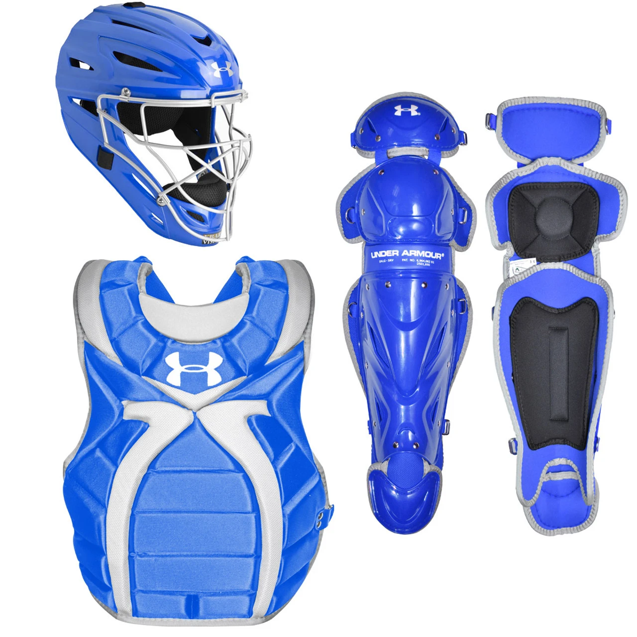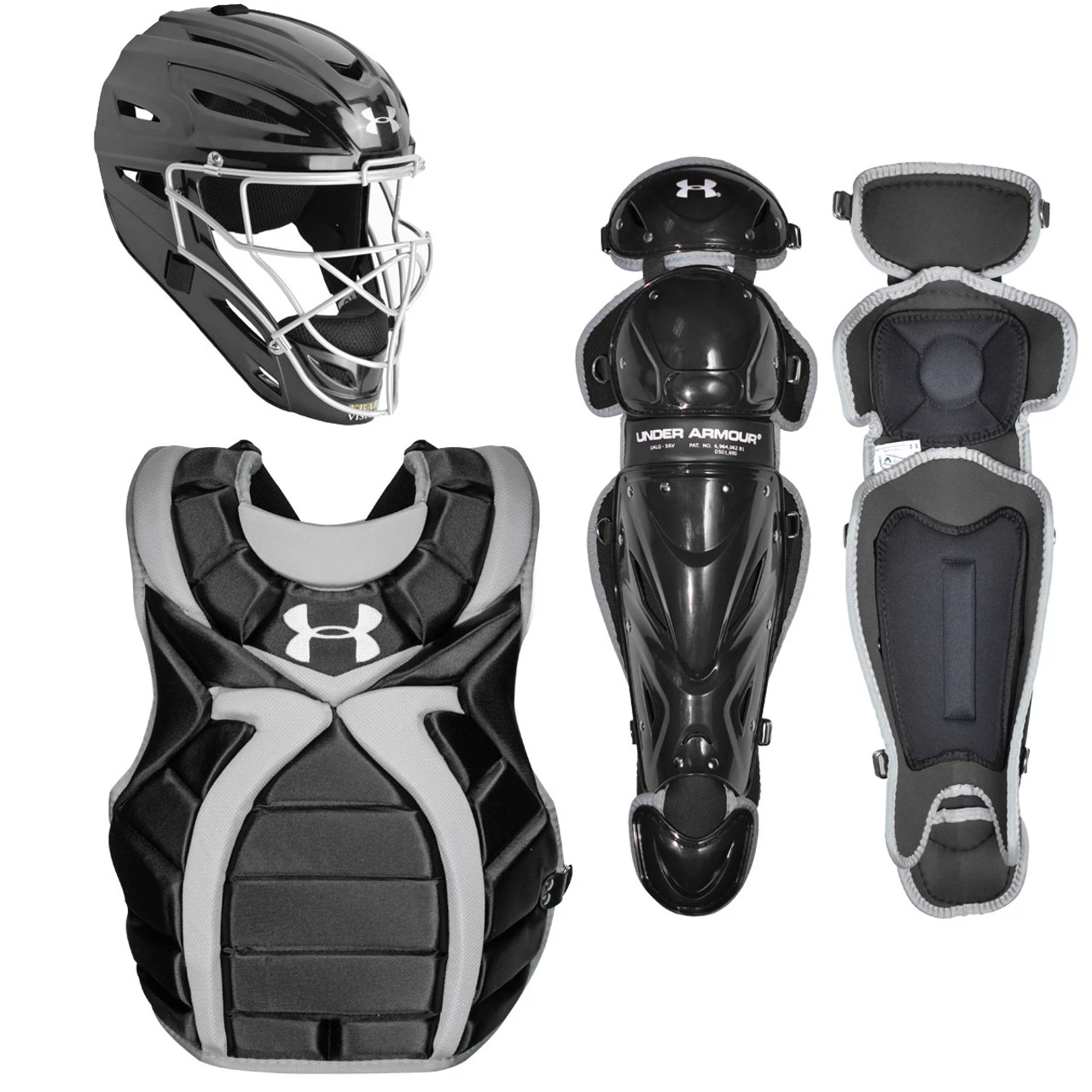 Gear-up with the intermediate women’s Victory Series fastpitch catcher’s package from Under Armour. Featuring the Victory Series hockey style catcher’s mask along with Victory Series chest protector and leg guards. The Victory Series catcher’s set offers superior protection and comfort, plus a professional look. Recommended for girls ages 12-16.
